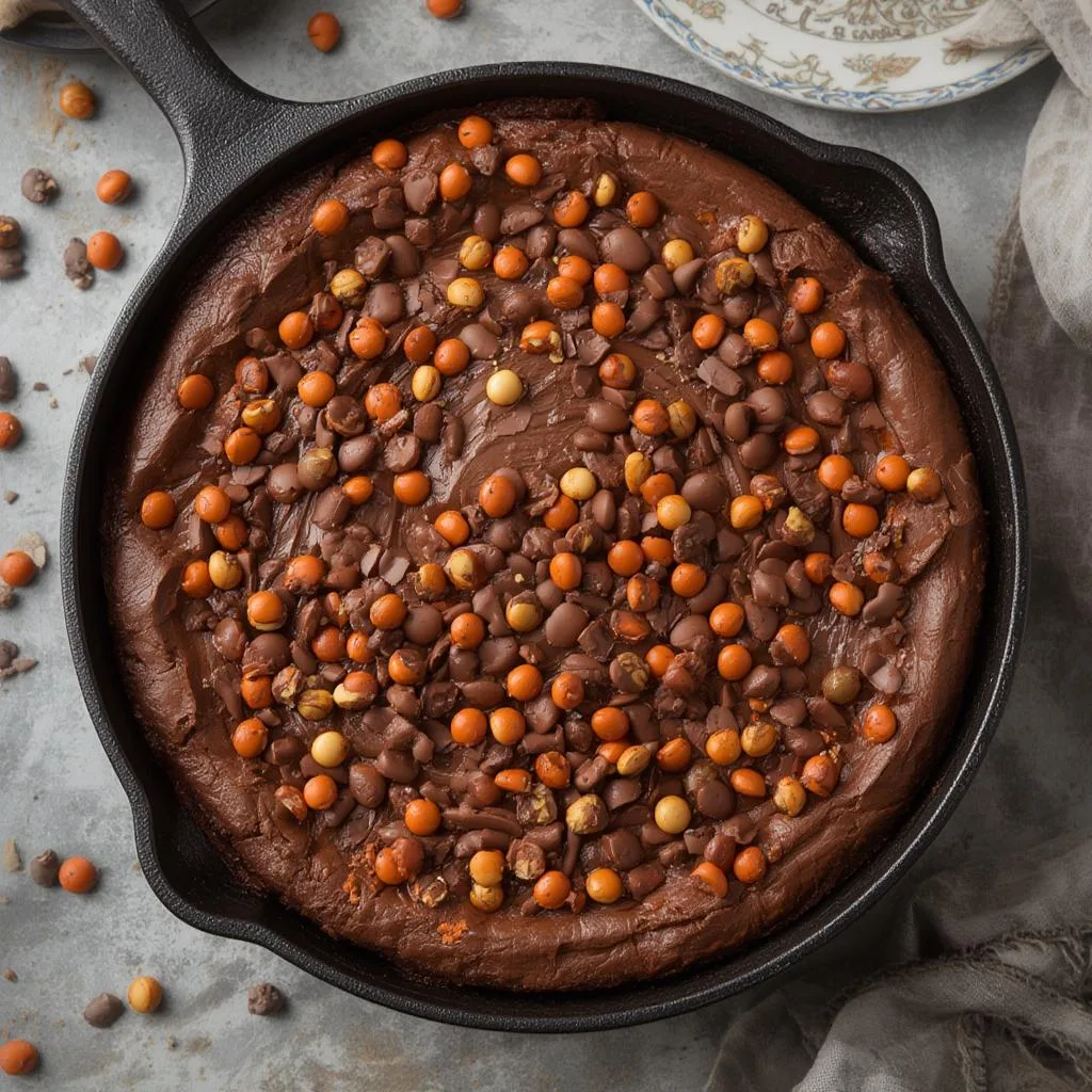 Reeses Skillet Brownie Dessert combines two of the world’s most beloved flavors—chocolate and peanut butter—in a warm, gooey masterpiece that’s impossible to resist. This skillet sensation takes the iconic flavors of Reese’s Pieces Cookies and transforms them into a decadent, shareable dessert that’s perfect for everything from casual family movie nights to impressive dinner party finales. The magic happens when the rich brownie batter bakes around chunks of peanut butter cups, creating pockets of melty goodness throughout. What makes this recipe special is how the cast iron skillet creates the perfect texture: crispy edges with a soft, fudgy center that’s best enjoyed warm with a scoop of vanilla ice cream slowly melting on top.